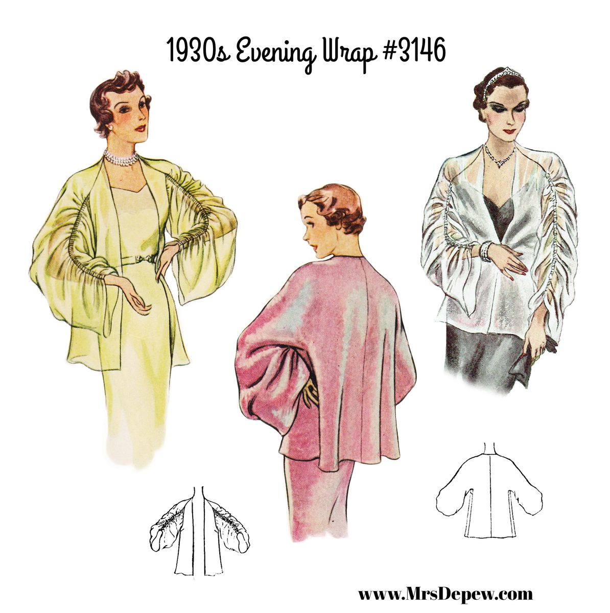 Vintage Sewing Pattern Ladies 1930s Evening Wrap Shrug Jacket 3146 32 34 36 38 40 42